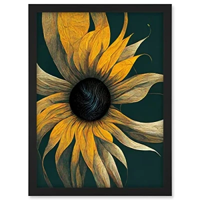 Doppelganger33 LTD Abstract Modern Sunflower Black Yellow Artwork Framed A3 Wall Art Print