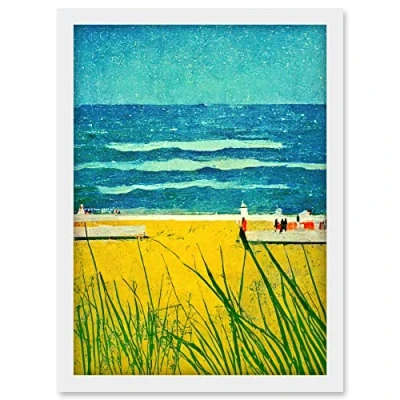 Doppelganger33 LTD Blue Sky Seaside Summer Scene Sandy Beach Artwork Framed A3 Wall Art Print