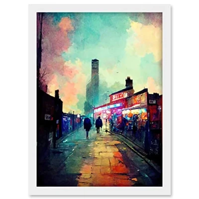 Doppelganger33 LTD Brick Lane London 1960's Night Street Scene Oil Painting Artwork Framed A3 Wall Art Print