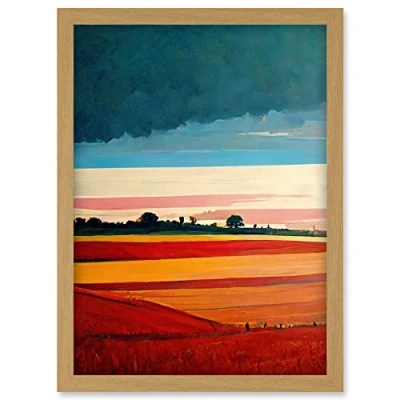 Doppelganger33 LTD Colourful Modern Countryside Landscape Multicoloured Artwork Framed Wall Art Print A4