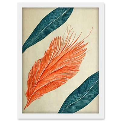 Doppelganger33 LTD Coral And Teal Feather Detail Illustration Artwork Framed A3 Wall Art Print