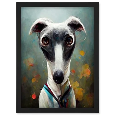 Doppelganger33 LTD Cute Greyhound Whippet Dog In Summer Meadow Painting Artwork Framed A3 Wall Art Print