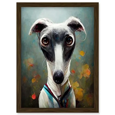 Doppelganger33 LTD Cute Greyhound Whippet Dog In Summer Meadow Painting Artwork Framed Wall Art Print A4