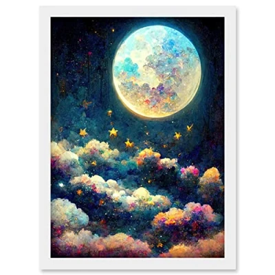 Doppelganger33 LTD Dreamy Night Sky Moon Stars Colourful Clouds Kids Cute Artwork Framed Wall Art Print A4