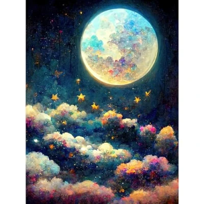 Doppelganger33 LTD Dreamy Night Sky Moon Stars Colourful Clouds Kids Cute Large Wall Art Poster Print Thick Paper 18X24 Inch
