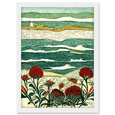 Doppelganger33 LTD Floral Shoreline Coastal Landscape Summer Seaside Artwork Framed A3 Wall Art Print