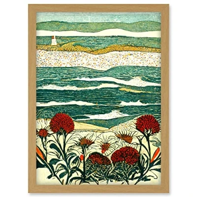 Doppelganger33 LTD Floral Shoreline Coastal Landscape Summer Seaside Artwork Framed A3 Wall Art Print
