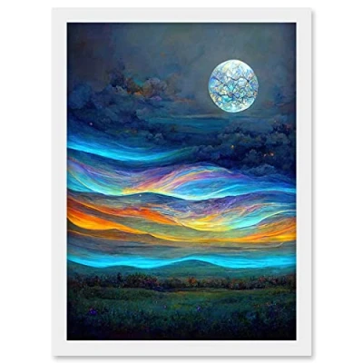 Doppelganger33 LTD Full Moon Aurora Sky Modern Landscape Artwork Framed A3 Wall Art Print
