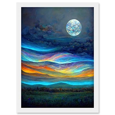 Doppelganger33 LTD Full Moon Aurora Sky Modern Landscape Artwork Framed Wall Art Print A4