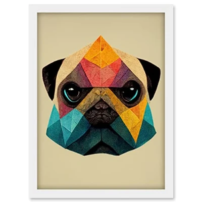 Doppelganger33 LTD Fun Geometric Colourful Pug Dog Artwork Framed A3 Wall Art Print