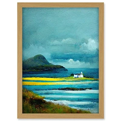 Doppelganger33 LTD Isle Harris White Crofters Cottage Scotland Seascape Artwork Framed A3 Wall Art Print