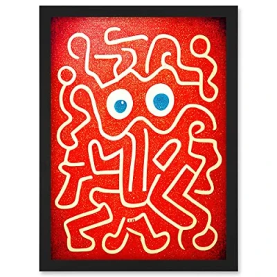 Doppelganger33 LTD Line Drawing On Red With Googly Eyes Artwork Framed A3 Wall Art Print