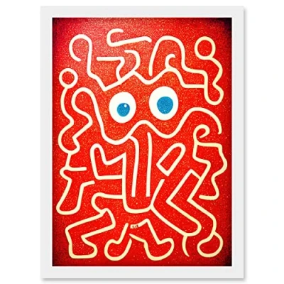 Doppelganger33 LTD Line Drawing On Red With Googly Eyes Artwork Framed Wall Art Print A4