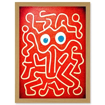 Doppelganger33 LTD Line Drawing On Red With Googly Eyes Artwork Framed Wall Art Print A4