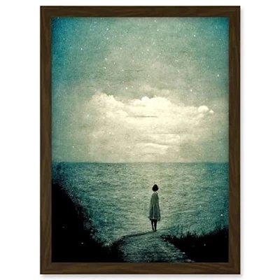Doppelganger33 LTD Looking Out To Sea Dreamscape Lone Woman Dusk Calm Elegant Panting Artwork Framed A3 Wall Art Print