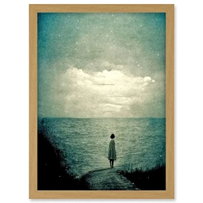 Doppelganger33 LTD Looking Out To Sea Dreamscape Lone Woman Dusk Calm Elegant Panting Artwork Framed A3 Wall Art Print