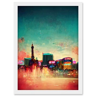 Doppelganger33 LTD Modern Las Vegas Skyline Colourful Acrylic Cityscape Artwork Framed A3 Wall Art Print