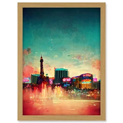 Doppelganger33 LTD Modern Las Vegas Skyline Colourful Acrylic Cityscape Artwork Framed A3 Wall Art Print