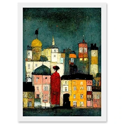 Doppelganger33 LTD Onlooker Quirky Colourful Street Scene Artwork Framed Wall Art Print A4