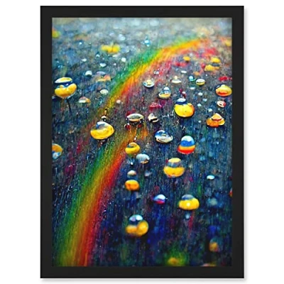 Doppelganger33 LTD Raindrops On Rainbow Light Prism Oil Painting Artwork Framed Wall Art Print A4