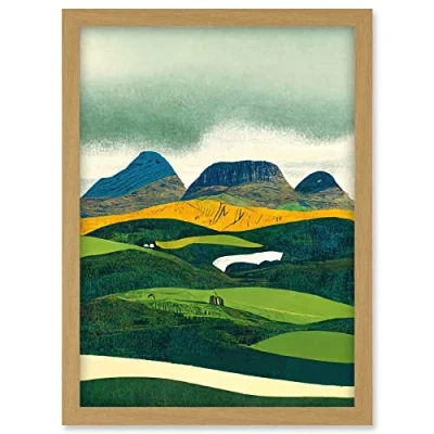 Doppelganger33 LTD Scottish Highland Munros Landscape Linocut Artwork Framed A3 Wall Art Print