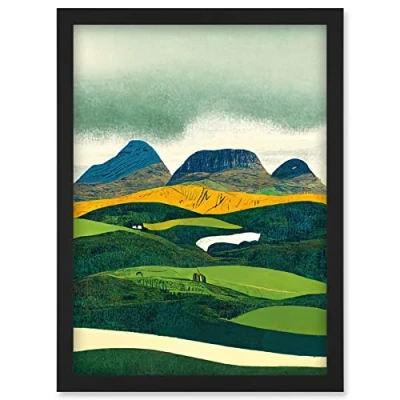 Doppelganger33 LTD Scottish Highland Munros Landscape Linocut Artwork Framed Wall Art Print A4
