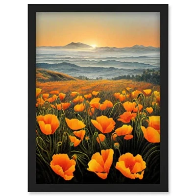 Doppelganger33 LTD Shoreline California Poppies At Sunrise Painting Artwork Framed Wall Art Print A4