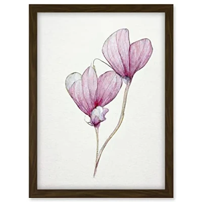 Doppelganger33 LTD Simple Pink Cyclamen Flower Modern Watercolour Illustration Minimalist Artwork Framed A3 Wall Art Print