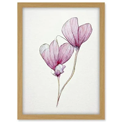 Doppelganger33 LTD Simple Pink Cyclamen Flower Modern Watercolour Illustration Minimalist Artwork Framed A3 Wall Art Print