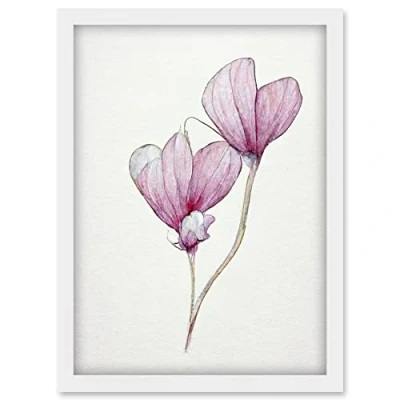Doppelganger33 LTD Simple Pink Cyclamen Flower Modern Watercolour Illustration Minimalist Artwork Framed Wall Art Print A4