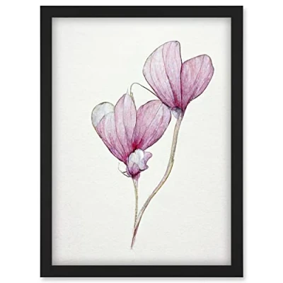 Doppelganger33 LTD Simple Pink Cyclamen Flower Modern Watercolour Illustration Minimalist Artwork Framed Wall Art Print A4