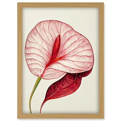 Doppelganger33 LTD Single Red Laceleaf Flower Illustration Anthurium Artwork Framed Wall Art Print A4
