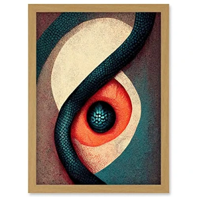 Doppelganger33 LTD Snake Eyes Abstract Scales Teal Red Artwork Framed Wall Art Print A4
