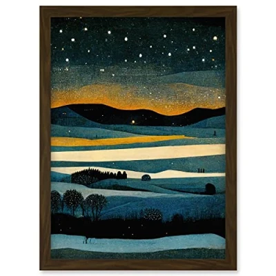 Doppelganger33 LTD Star Filled Twilight Landscape Painting Artwork Framed A3 Wall Art Print