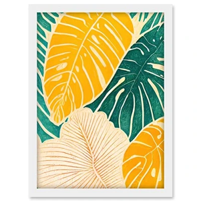 Doppelganger33 LTD Tropical Monstera Cheese Plant Leaf Boho Painting Artwork Framed A3 Wall Art Print