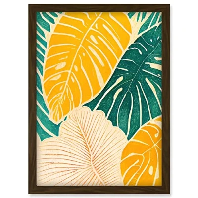 Doppelganger33 LTD Tropical Monstera Cheese Plant Leaf Boho Painting Artwork Framed Wall Art Print A4