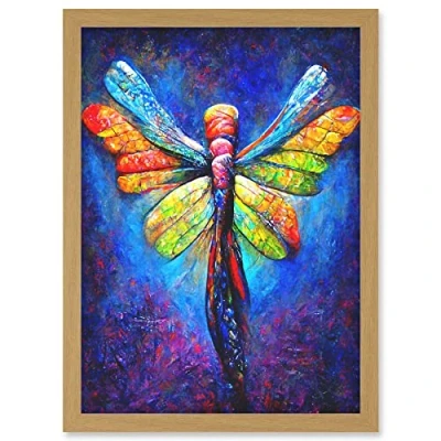 Doppelganger33 LTD Vibrant Neon Dragonfly Glowing Night Oil Painting Artwork Framed A3 Wall Art Print