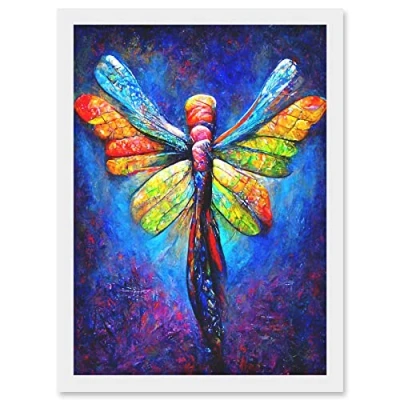 Doppelganger33 LTD Vibrant Neon Dragonfly Glowing Night Oil Painting Artwork Framed A3 Wall Art Print