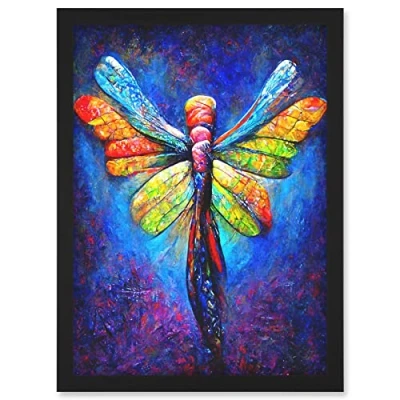 Doppelganger33 LTD Vibrant Neon Dragonfly Glowing Night Oil Painting Artwork Framed Wall Art Print A4