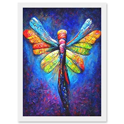 Doppelganger33 LTD Vibrant Neon Dragonfly Glowing Night Oil Painting Artwork Framed Wall Art Print A4