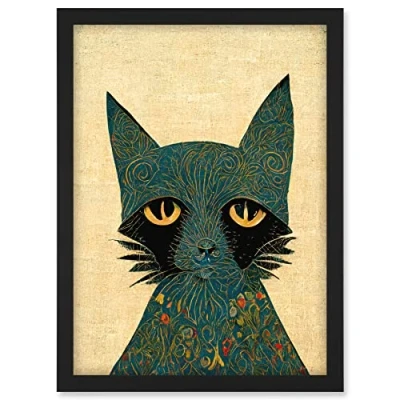 Doppelganger33 LTD William Morris Style Floral Blue Cat Artwork Framed A3 Wall Art Print