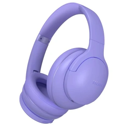DOQAUS Bluetooth Headphones Over Ear, 90H Playtime, 3 EQ Mode, HiFi Stereo Bass Wireless with Mic, Soft Earmuff, Foldable for Phone/PC (Lilac)