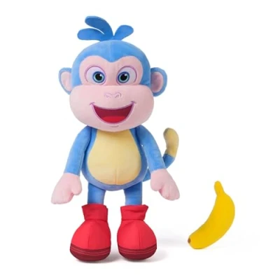 BOOTS MONKEY STUFFED ANIMAL: Snuggle with Boots This sweet stuffed animal features Boots' velvety-soft blue-and-yellow fur, bright smile, and iconic bright red boots, as seen in the cartoon. SINGING PLUSH: Boots is full of surprises that make playtime engaging and entertaining. Press his tummy and he comes to life with 9 banana-riffic phrases and 2 songs from the show, including his and Dora's theme songs SENSORY PLAY: Boots' flexible tail bends and curls freely so he can swing and pose. He also comes with a bright yellow banana toy, which he can hold in his Velcro-lined hands. KIDS GIFTS: Boots is an exciting gift and snuggly companion for little explorers. Kids learning Spanish and fans alike will love this plush monkey for any occasion: as a birthday gift, decor, or just because Includes: 1 Dora Bananas for Boots 13" Plush Toy, Manufacturer: Spin Master