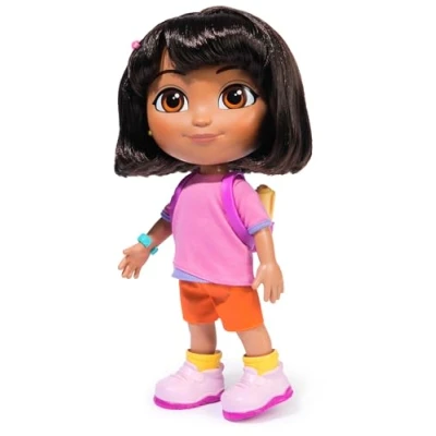 Music and songs play an important role in the preschool series Dora popular for over 25 years. With this interactive Dora doll, children can sing together with their adventurous heroine and also learn first English words Dora has silky, manageable hair that is easy to style. She wears her favourite outfit from the T-shirt and shorts series and brings her iconic backpack that should not be missing on any adventure. With two songs and more than 25 phrases and sounds, preschoolers not only immerse themselves in the world of Dora, but also learn first English phrases and words. The doll has two language settings: German/English, Italian/English With her interactive doll Dora, children aged 3 and up can immerse themselves in imaginative role play and recreate the exciting adventures from the popular TV series again and again. Classic hair and dress game is also possible. Contents: 1 interactive doll 35 cm with outfit (2 x AA batteries included), 1 backpack Sing with me Dora is a great gift for all fans of the series and those who should be playfully familiarized with a first foreign language at an early age. With her cheerful, confident nature, Dora becomes a role model especially for girls, Manufacturer: Spin Master