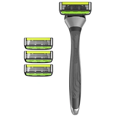 JOIN THE FOREFRONT OF SHAVING: With a six-blade shaving platform, Dorco has created the next generation of razors dermatologically tested to provide a smooth shave with a single stroke. The pivoting head constantly maintains closest contact with the various contour of your skin, and the wide SleekFlow Guard Bar ensures hair follicles are primed for a close and comfortable shave. GET A GRIP: The ergonomic handle with rubber grip fits in your hand like a glove and prevents the razor from slipping, even when it is wet. When you are done, a quick rinse will get rid of the debris and leave all six blades sharp and ready to go next time. RAISING THE BAR FOR CLOSE SHAVES: MicroSpan technology allows the blades to be positioned close together, reducing the amount of skin that bulges between them for a safe, smooth shave. Also, never miss hard to reach spots with the safety trimmer. SOOTHE SENSITIVE SKIN: Vitamin E & Aloe Vera on the Dual SmoothShield lubrication strip of the Pace 6 Pro moisturise and nourish your skin. JUST THE WAY YOU LIKE IT: Our interchangeable docking system allows any men’s Dorco Pace/Pace Pro cartridges to fit any Dorco Pace/Pace Pro razor handle. Choose the one that suits your needs and replace them whenever you want!