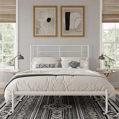 Modern design with simple statement headboard. All metal construction that includes side rails, additional center legs and secured slats for ensured support and durability. No additional box spring or foundation required. All metal construction that includes side rails, additional center legs and secured slats for ensured support and durability. No additional box spring or foundation required.