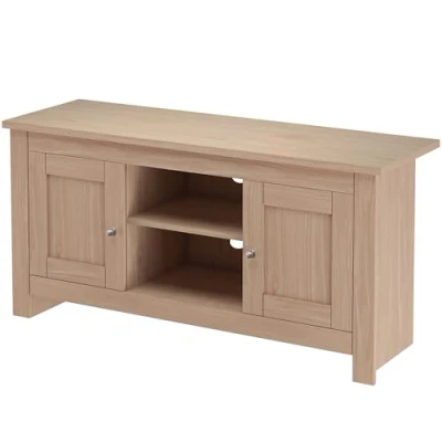 Two doors & Two adjustable shelves Dimensions of the compartments: W30.4 x D39 cm Two open shelves in the middle with cable duct in the rear wall Wood thickness: 15 mm / 12 mm Overall dimensions (WxDxH): 119.5 x 39 x 57.8 cm