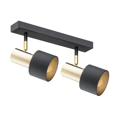 Doria Twin Ceiling Spotlight Black Structure, Brass Elements