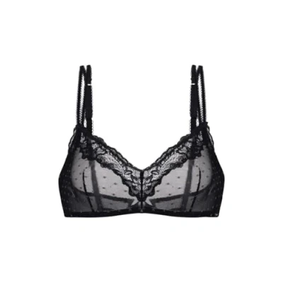 DORINA Origins Non Padded Wireless Bralette, Shimmer Dot Mesh, Lace Trim, Adjustable Straps and Power Mesh Back, Black