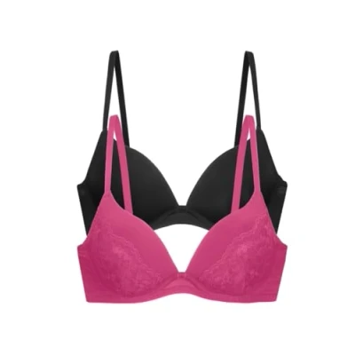 Two-Piece Pack: Includes two stylish push-up plunge bras for added value and variety Comfort and Support: Underwired, moulded cups with adjustable shoulder straps provide exceptional lift and shaping Stylish Design: One bra features smooth micro fabric for a sleek look, while the other is adorned with delicate lace details for an elegant touch Material: Crafted from soft, quality micro fabric for all-day comfort Secure Fit: Two-strand brushed hook-and-eye fastening ensures a snug and reliable fit